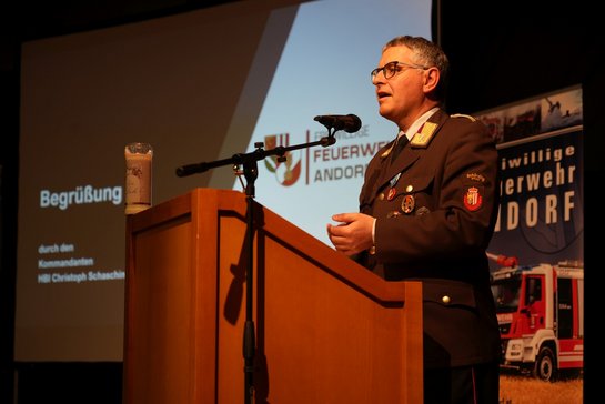 Am Freitag, den 6. März 2026 hielt die Freiwillige Feuerwehr Andorf ihre alljährliche Jahresvollversammlung ab. Wie schon in den letzten Jahren bildete dabei die Pfarr- und Kulturwerkstatt "punkt1" sowie die Bewirtung durch Schülerinnen der Landw. Berufs- und Fachschule Andorf den perfekten Rahmen. Kommandant Christoph Schaschinger konnte zur Vollversammlung nicht nur zahlreiche Kameradinnen und Kameraden von Aktiv- und Reservestand sowie eine große Abordnung der Jugendgruppe begrüßen, sondern auch Abschnitts-Feuerwehrkommandant Norbert Haidinger und Vertreter der anderen Einsatzorganisationen sowie Ehrengäste aus Wirtschaft und Politik - neben Bürgermeister Karl Buchinger auch Gäste aus der hohen Politik: Abg. zum Nationalrat Hermann Brückl und Landeshauptmann-Stellvertreter Dr. Manfred Haimbuchner.