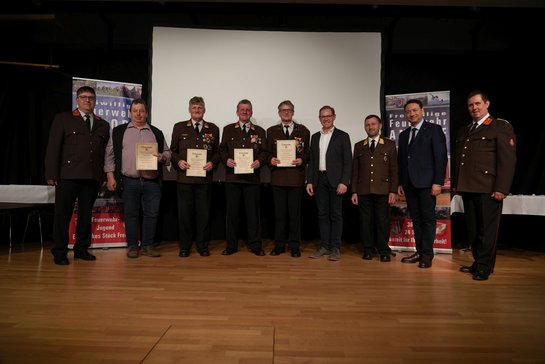 Die Jahresvollversammlung begann - nach einem von Bezirksfeuerwehrkurat Erwin Kalteis durchgeführten Totengedenken - mit den Berichten der Funktionsträger der Feuerwehr Andorf, die ein umfassendes Bild der Aktivitäten im vergangenen Jahr zeichneten, sei es im Einsatz- und Übungsdienst, bei der Jugendarbeit oder bei den vielen Verwaltungstätigkeiten, in die abermals tausende Stunden freiwillig und unentgeltlich flossen. In Erinnerung gerufen wurden dabei besonders herausfordernde Einsätze, aber bspw. auch die wieder herausragenden Leistungen unserer Jugendgruppe, die in einer Platzierung in den vordersten Rängen des Landesbewerbs und dem Bezirkssieg gipfelten. Die Vorfreude der Jugendgruppe auf den kommenden Landesbewerb ist dementsprechend groß, findet dieser im Jahr 2026 doch in der Marktgemeinde Andorf statt. Dass die Vorbereitungen dafür schon in vollem Gange sind, war den Berichten ebenfalls zu entnehmen. Es folgte anschließend der Block der Angelobungen, Beförderungen und Ehrungen, die von den Ehrengästen als sichtbares Zeichen der Anerkennung an die Auszuzeichnenden überreicht wurden. Nach den folgenden Grußworten der Ehrengäste konnte Kommandant Christoph Schaschinger den offiziellen Teil der Jahresvollversammlung schließlich beenden und zum vorbereiteten Buffet einladen.