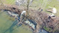 Mit Granitsteinen wird eine Rampe in die Pram gelegt, welche als Slipstelle dient. So kann die Feuerwehr Andorf ihre Boote in Zukunft schnell und mit geringem Aufwand zu Wasser lassen. Eine Zeitersparnis und Erleichterung, welche im Notfall Leben retten kann.
